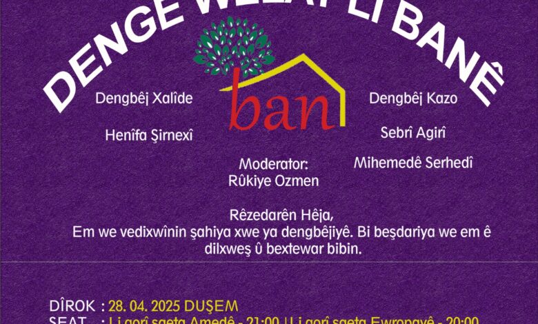 Êvara 28ê Nîsanê Komisyona Çand û Hunerê ya BANê, çalakîya Şahîya Dengbêjan li dar xist https://youtu.be/Bux-0UgM5GQ?si=4sRizdgNgSt0ZM6s